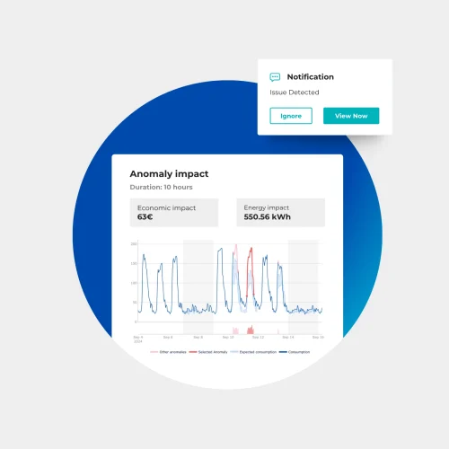 The Anomaly Detection tool flags unexpected energy consumptions that don’t align with your usual energy consumption patterns. That data is crossed with your standard consumptions and a statistical model to classify it as an anomaly.
