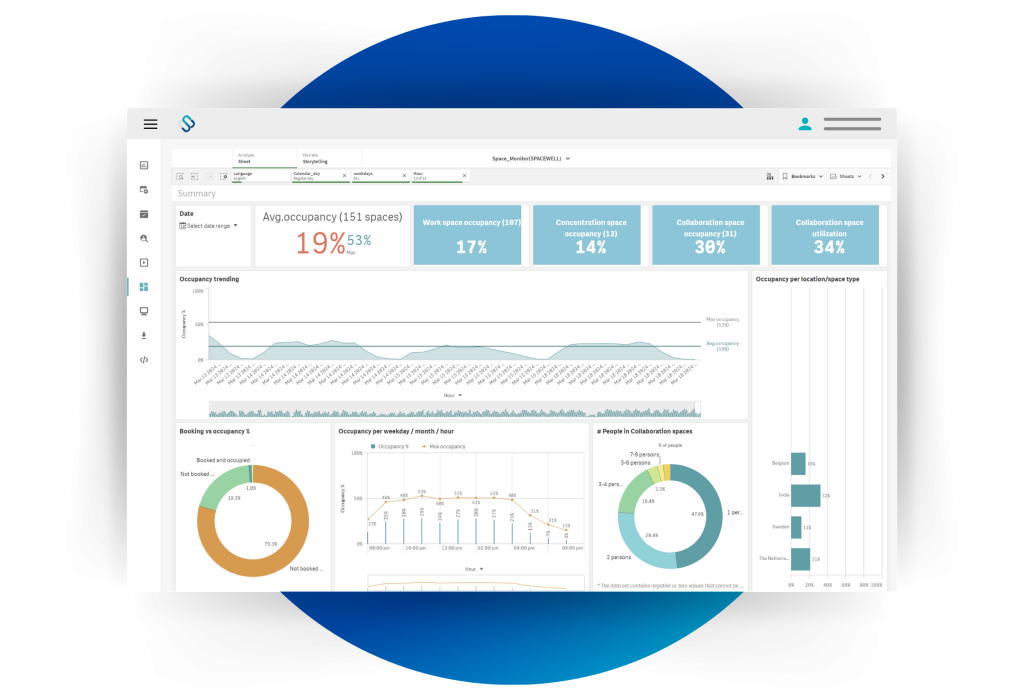 Get full workplace suite with deeper insights into space utilization, space simulations, and the possibility to connect external data sources from building systems.