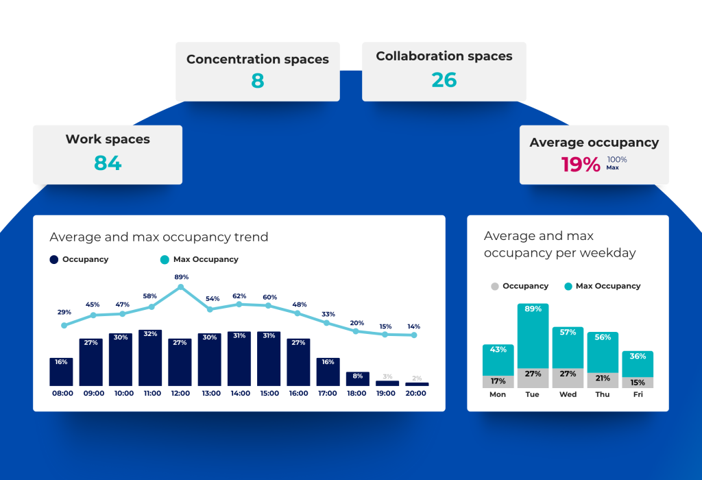 - Accurate Occupancy Data: Use IoT sensor data to analyze how your workspace is currently used.